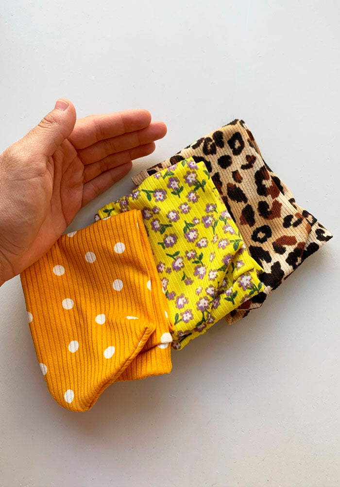 INCLUYE: Calcetas Ribby en puntos, animal print y en flores.