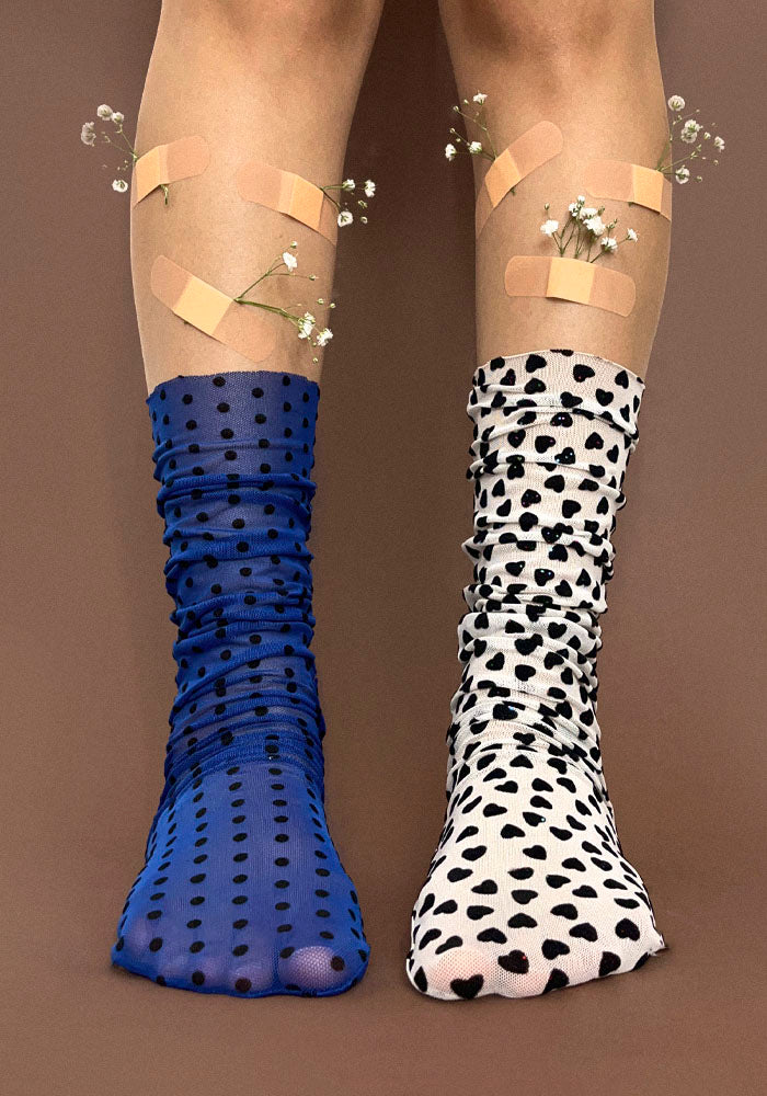 Paquete de 2 calcetitas en mesh de puntos y de corazones.